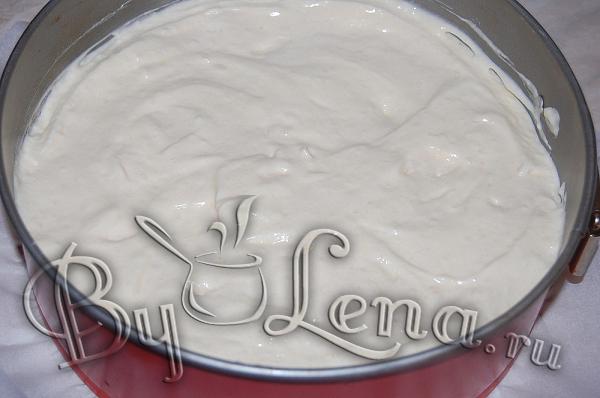 6Тесто вылить в форму(здесь 28см) застеленную бумагой для выпечки.